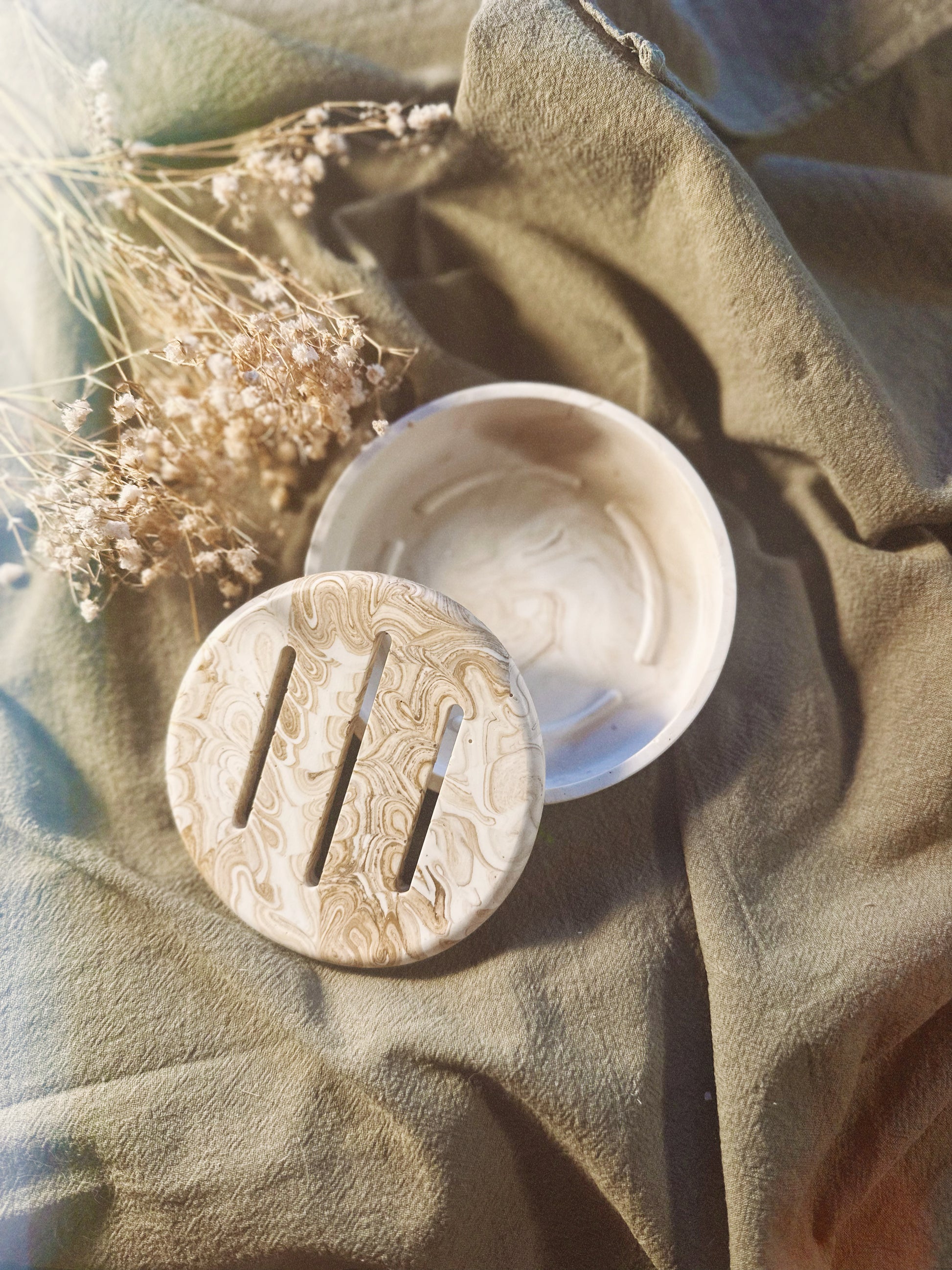 Jabonera elaborada a mano en resina mineral con pigmentos naturales creada para acompañar a tus jabones y dar un toque sofisticado a tu baño.