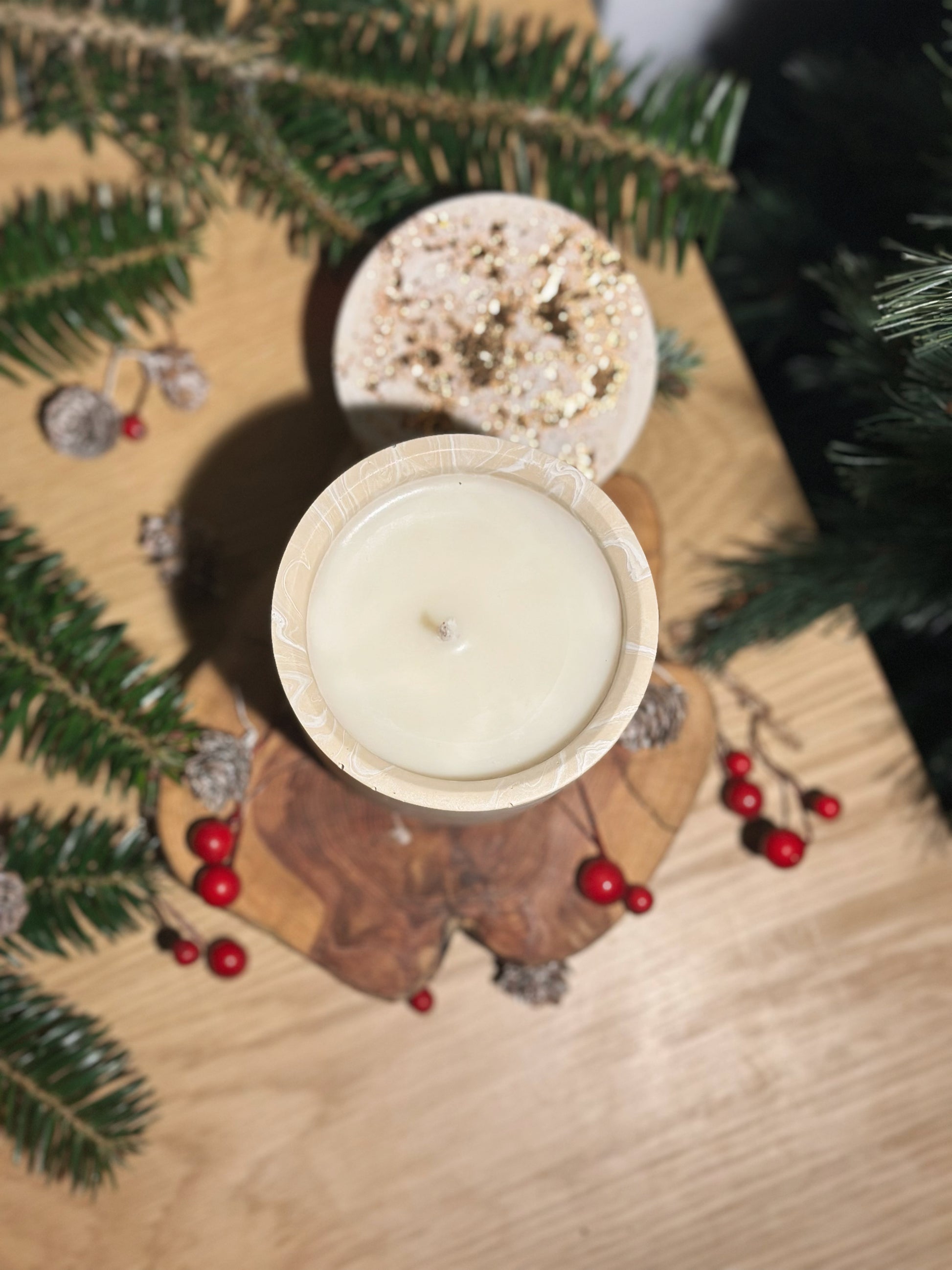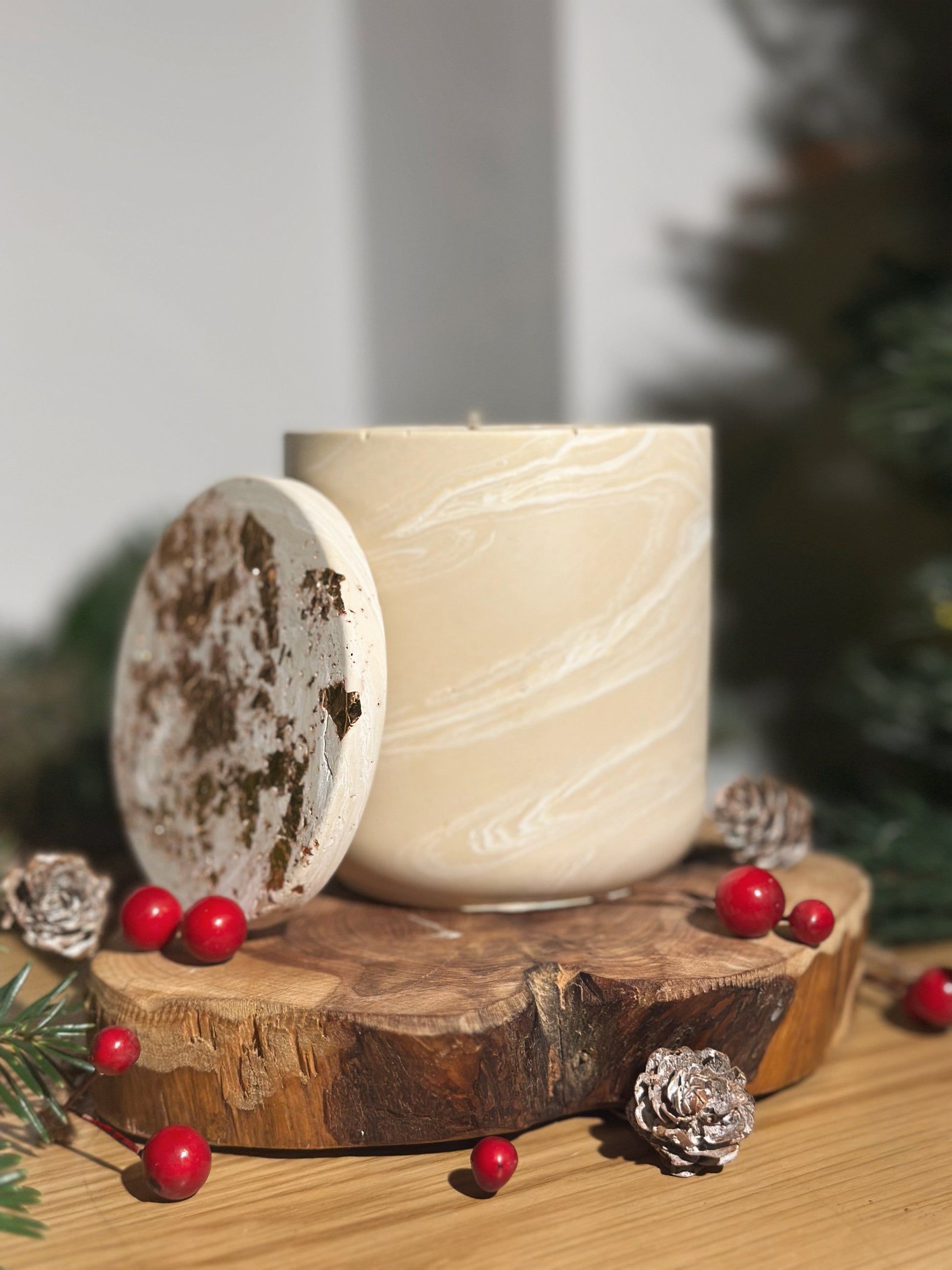 Al ser una vela hecha a mano, es una pieza única. Pueden diferir ligeramente de las imágenes, reflejando la belleza natural de lo artesanal.